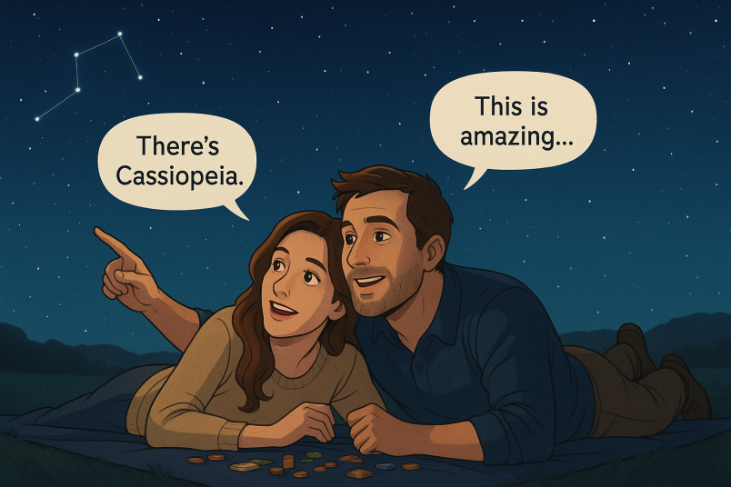 Lay back and enjoy the night sky. Talking about dreams and constellations creates quiet intimacy.